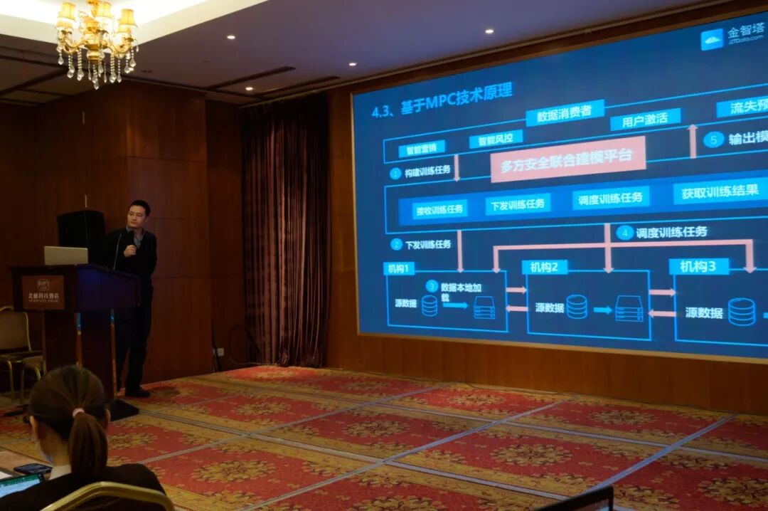 在下午的技术方案论证环节,金智塔科技产品总监谢鲁基于公司之前的项目经验和金融机构的实际需求,提出了基于共享学习的征信大数据解决方案供项目组讨论。该方案针对当前数据共享需求与用户隐私数据泄露、滥用之间的矛盾,提出了“建模数据不出域,平台调度训练”的技术设想,可以在确保各数据提供方和需求方在使用数据共享学习的同时,做到“用户隐私不会被泄露,数据使用行为可控”。